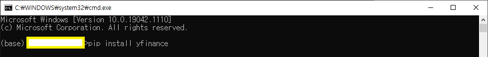 3. cmd.exe 화면에 나오면 pip install yfinance 라고 입력한다.