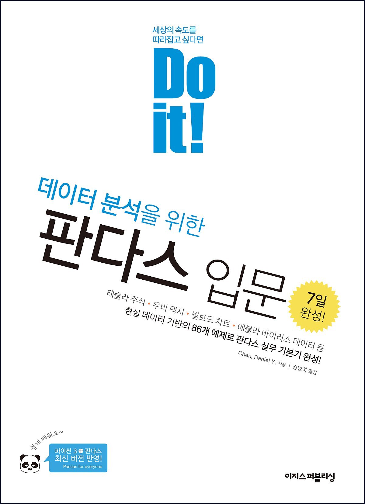 나는 "Do it!" 책 series를 몇 권 사봤는데, (Do it! Jump to Python 등) 초보들을 위한 입문서를 잘 펴내는 series라 생각이 든다. 먼저 실습 환경 설치부터 차근차근 설명해 주고 풍부한 예제를 제공한다. 아래 목차를 보면 1. 실습 환경 준비, 2. 시작하기, 3. 데이터 프레임, 4. 그래프 그리기 로 진행하면서 초보 사용자가 부담없이 예제를 직접 구현하면서 깨달을 수 있게 도와준다.
